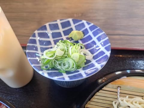 薬味はネギとワサビ。