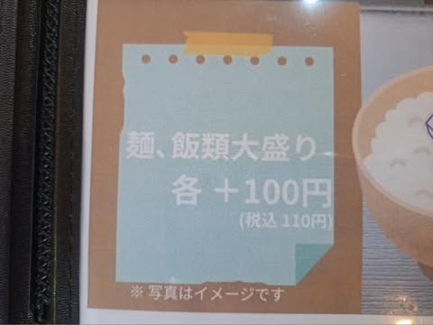 麺やご飯は大盛にできます!(各税込110円)