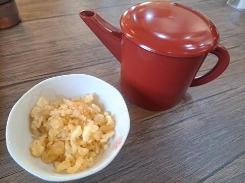 私も天かすとそば湯を頼みました。