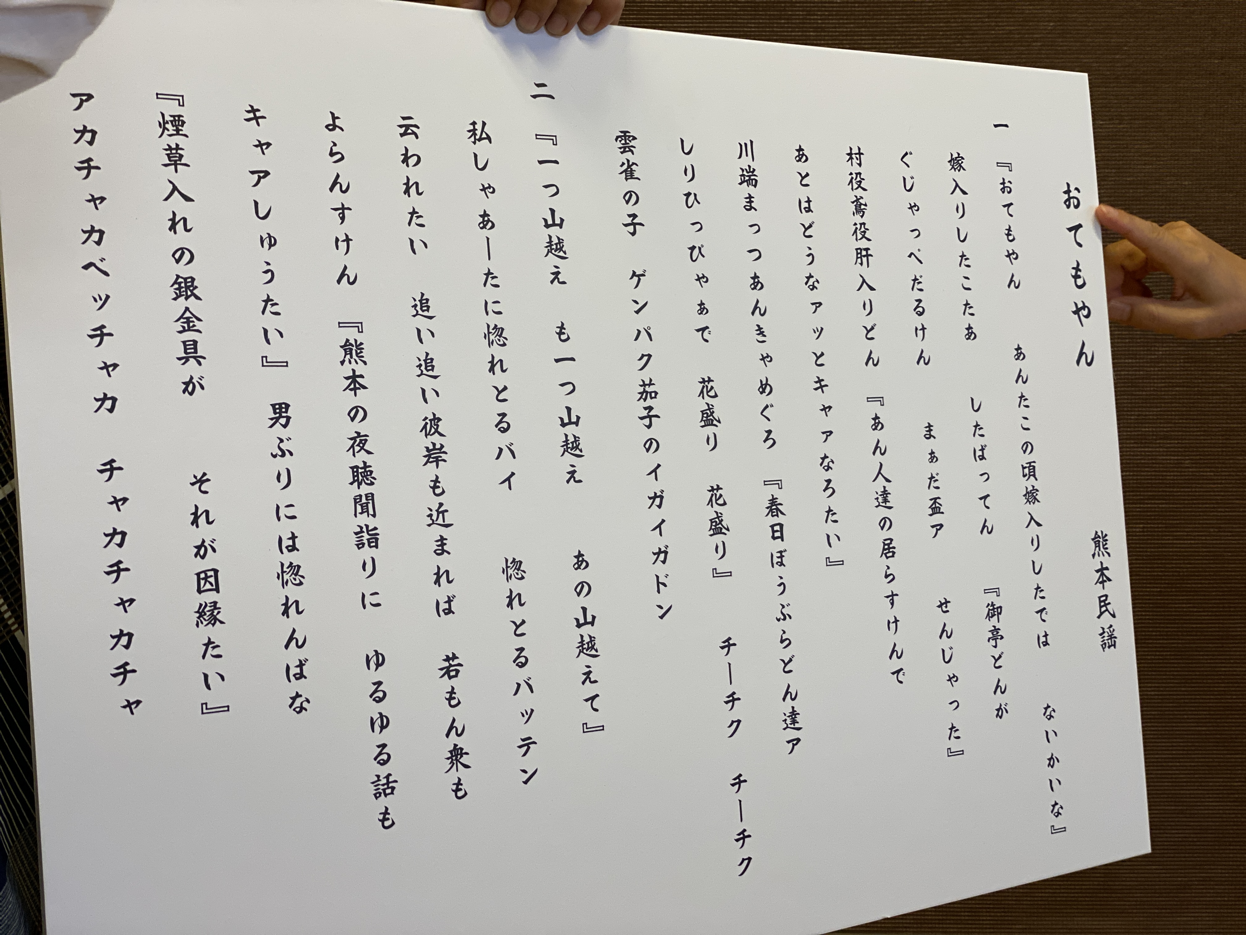 歌詞だけで見たら、おてもやんは山を3つばかり超えたとこに好きな男がおるので、結婚せんやったんかなと思ったのですが、先生いわく1番の歌詞と2番の歌詞はリンクしている訳ではないのだそう。