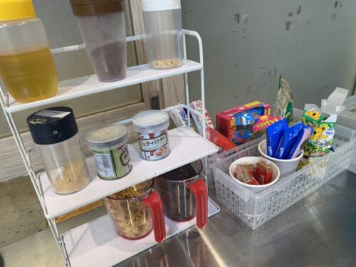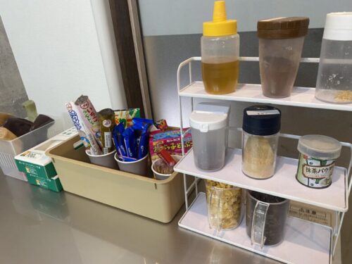 蜂蜜やココアパウダーに抹茶パウダーといった調味料系は勿論、コーンフレークもかけ放題です。