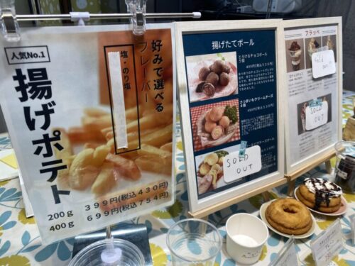これらのドーナツやフライドポテトは、注文してから揚げるので揚げたてを楽しめます。