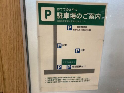 駐車場は店舗前2台、奥の方に3台で計5台停められます。