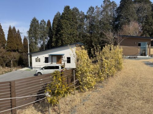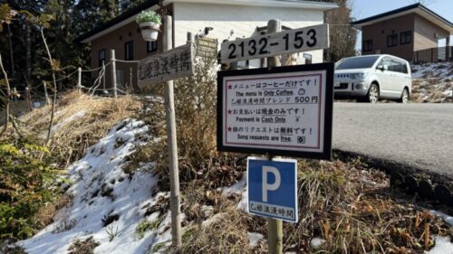 熊本市中央区から車でおよそ1時間。2月の午前中の阿蘇は雪が残っておりました。乙姫浪漫時間は、ペンションが並ぶ所から少し離れて、とても静かな場所にありました。