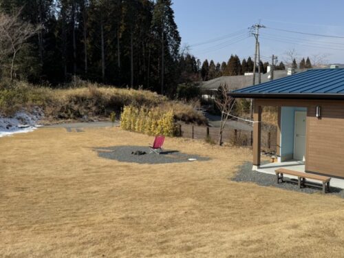 カフェの裏側にあたるこの場所はオーナーさんが一人で作り上げられた、とても綺麗なキャンプ場となっております。