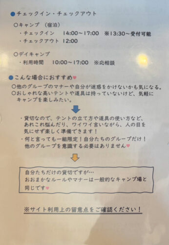 道具などは自分で用意していただく事になりますが、大人1名3500。中高生1名500円。小学生以下無料となっております。ソロキャンプは3500円です。