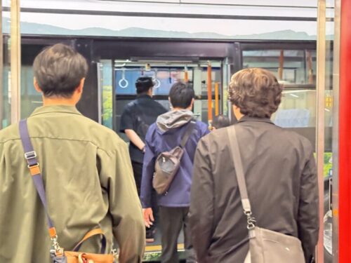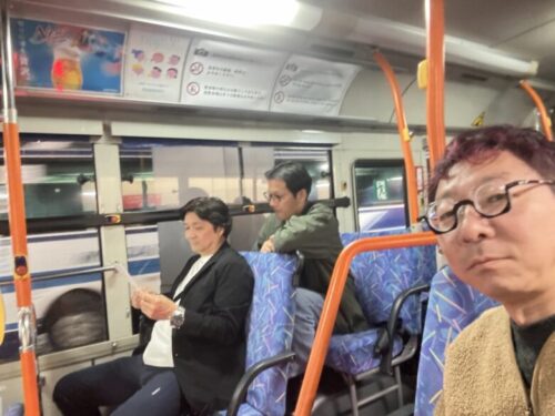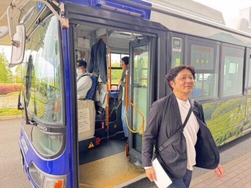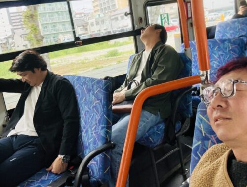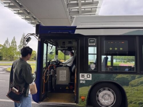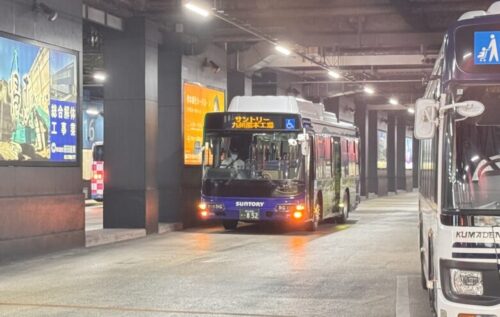サクラマチバスターミナルに到着。ふらふらとおっさん達が降りてきます。
