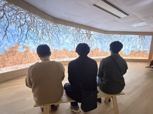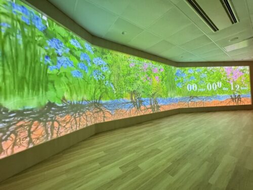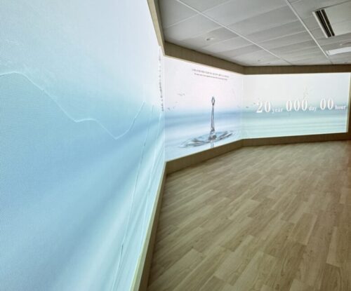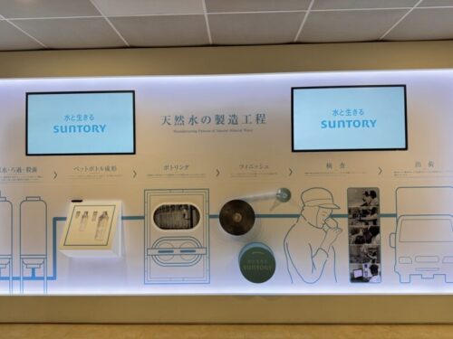 超巨大スクリーンで、天然水が生まれるまでを教えてくれます。