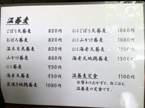 温蕎麦の単品メニューあり。