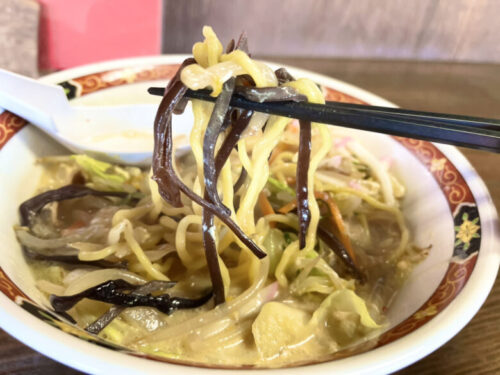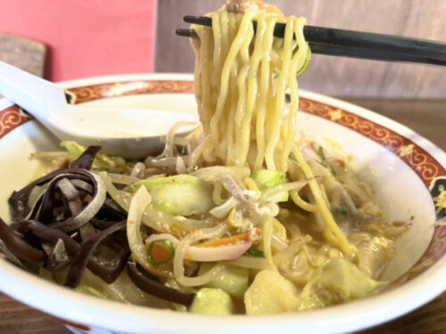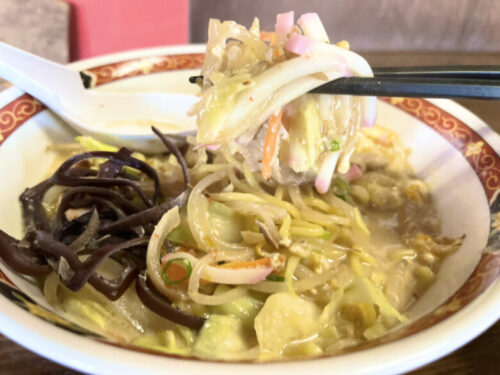 新鮮な野菜とお肉が入っていて具だくさん!麺にも野菜にも味がたっぷりとしみ込んでいて、あまりの美味しさに最初からずっとお箸が止まらない…!!!