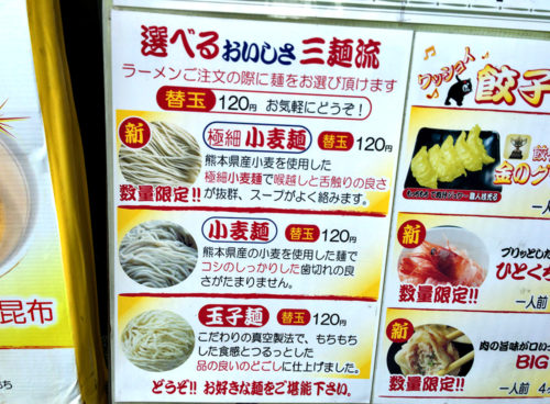 豚骨ラーメンだけでなく、味噌・塩・魚介など、様々な種類のラーメンや、餃子選手権で最優秀賞グランプリを獲得したという「金の餃子」や、特徴のお店ですが、なんと今回は「うどん」の提供を始めたそうです。ラーメン屋でうどん…。これはもう実際食べるしかない!と思い、お店に伺ってみました。