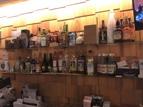 カウンター正面の壁には、リキュールやウイスキーなどがずらり!