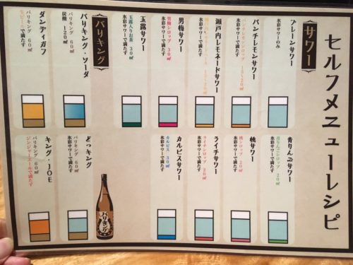 メニューの裏にお酒のレシピが詳しく書いてあるので、お酒の作り方に自信がない方でも安心です!