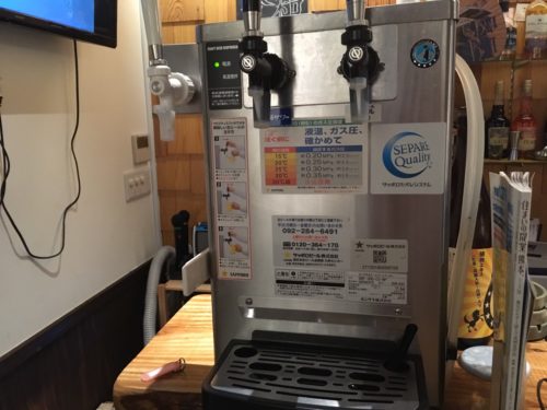 カウンターに生ビールとサワーが出るサーバーが設置されており、ここから自由にお酒を注ぐことができます。