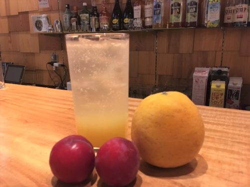 天草の松本農園の晩柑を丸々1個使った晩柑サワーを飲んでみると、さっぱりしておいしーーっ!