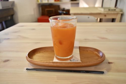 菊陽町のフルーツニンジンのみ! 注文を受けてから搾る「生にんじんジュース」は、店内のカフェスペースで注文できます。