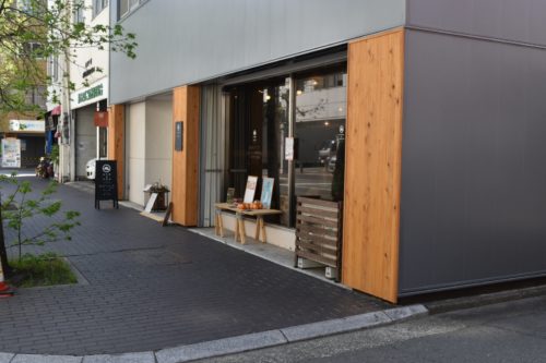 路面店の場所は、中央区練兵町の肥後銀行本店のお隣です。入り口には、トラックのイラストが描かれた看板があります。