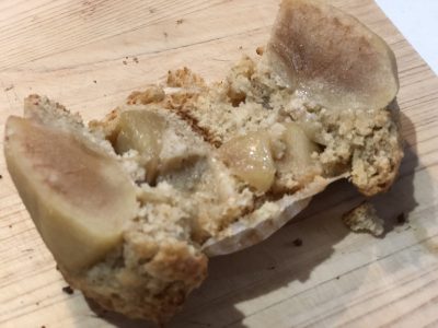 りんごの甘煮はアップルパイのようなリンゴの薄さを想像していましたが、カップケーキの半分をしめるリンゴのボリューム。そして小さめにカットされたリンゴもあり、食感も堪能できる幸福。甘煮なのにりんご本来の甘さが確実に残っていてさっぱりした味わいです。