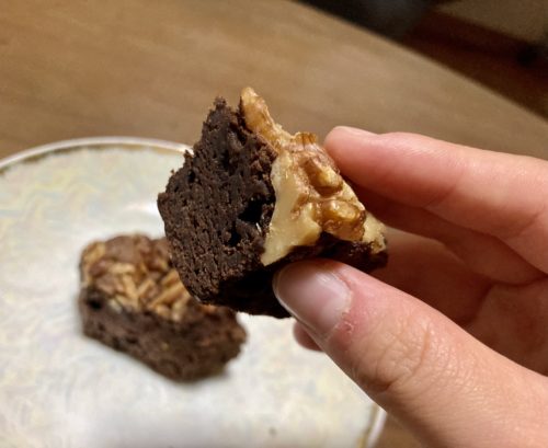 まずは、ブラウニー。クルミがたっぷりのせられていて、チョコはしっとり、甘くて濃厚。まさにおやつにぴったりの美味しさ!