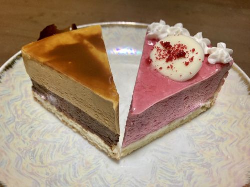 美しすぎるこの2つのケーキは、キャラメルショコラとフランボワーズ。それでは、頂きます。