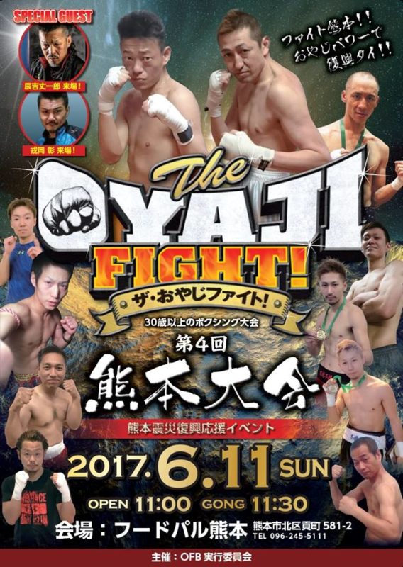 親父の為のボクシング大会「ザ・おやじファイト!熊本大会」が6/11(日)にフードパル熊本内会場にて行われるようです!