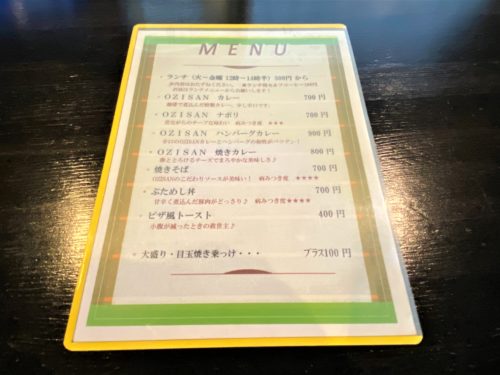 フードメニューも豊富です。OZISANカレーやOZISANナポリも気になります。