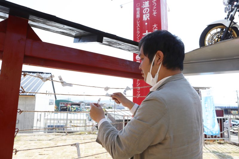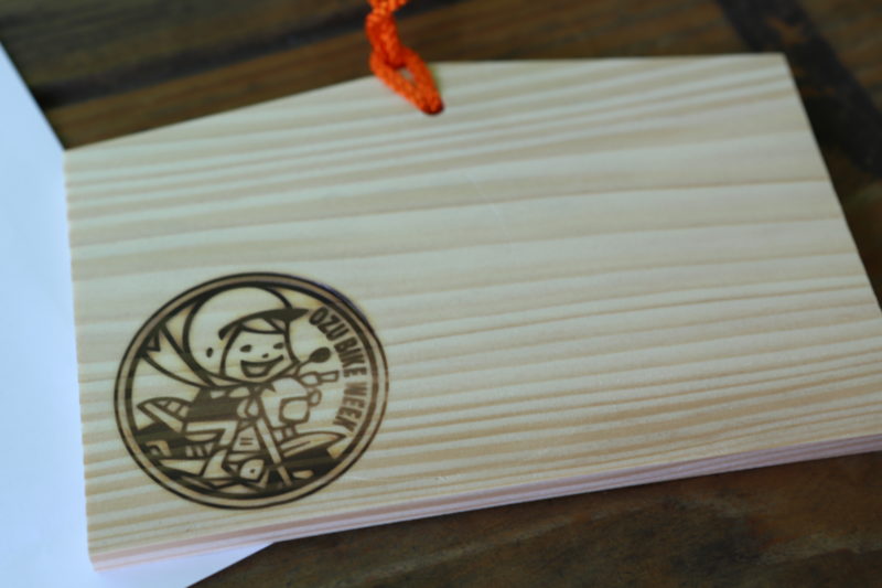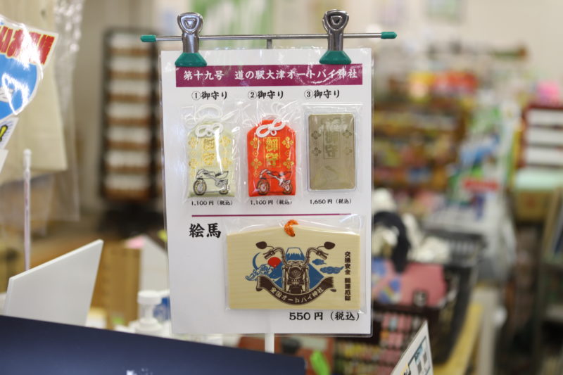 せっかく、オートバイ神社にやってきとたいうことで、しっかり祈願していきましょう。まずは絵馬から。道の駅大津の店内で購入できます。