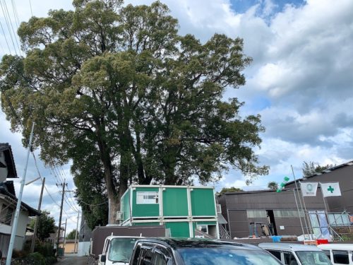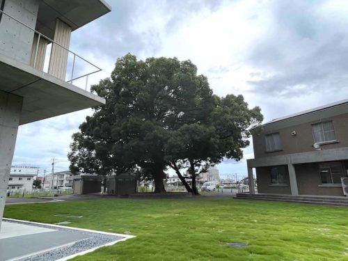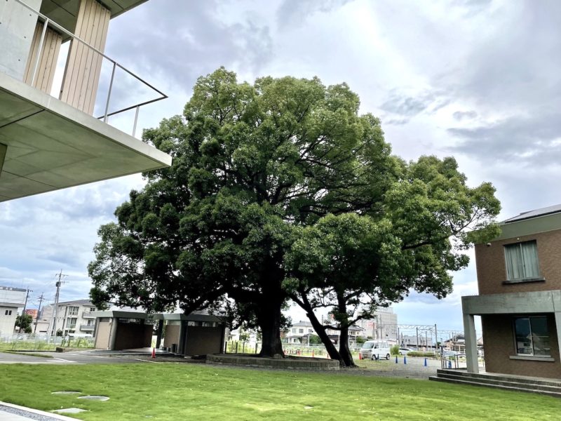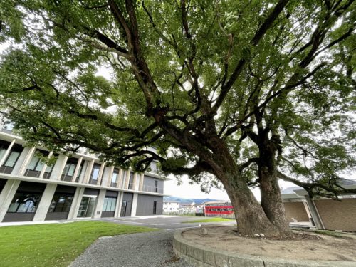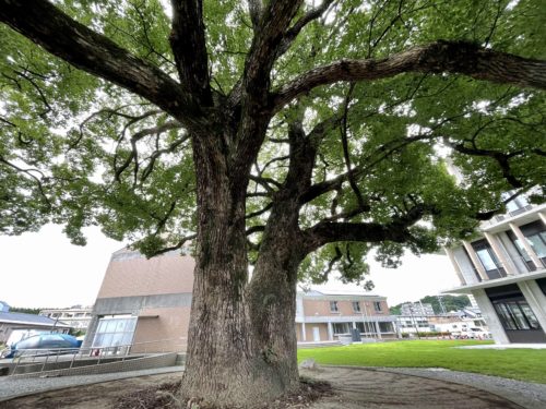 熊本地震を乗り越え、大津町役場とともに歩む巨木。町のシンボルと言われるのも納得の木です。