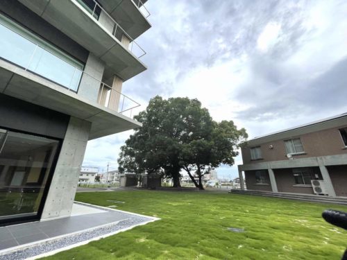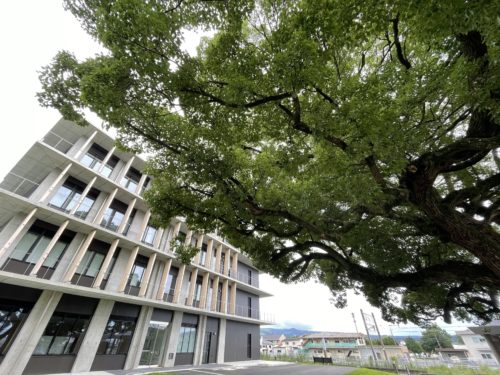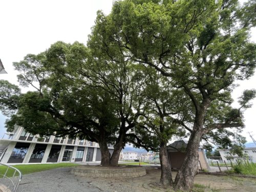 これだけの巨木は維持管理だけでも大変だし、新庁舎の建設工事をする上でジャマになることもあったかもしれません。大津町役場のウェブサイトにも、工事中の樹木保存についての記載があります。