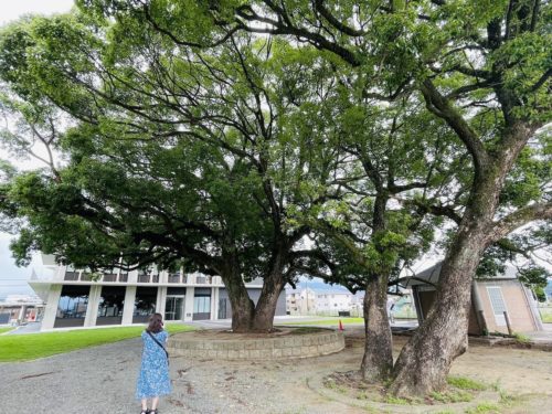 そんな大津町で今回見てきたのは、以前から気になっていた「町役場の隣に立つクスノキ」です。