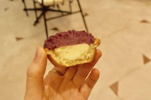 食べてみると、紫芋のクリームとチーズの層が綺麗に分かれています!