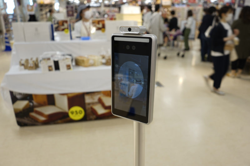 入り口では、検温器で体温を測って入場です。