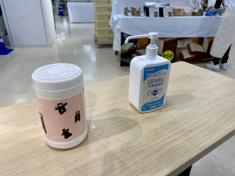 消毒のためのアルコールやウエットティッシュも用意されてました。