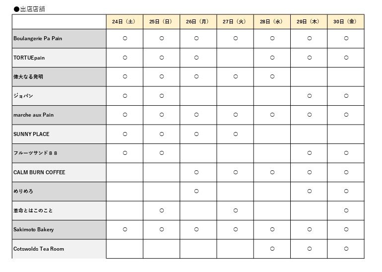 それぞれのお店の出店日は?