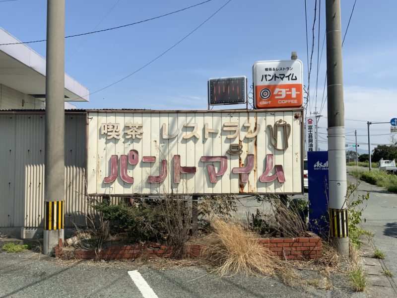 有明海沿いを走る国道501号線を進み、玉名市から長洲町に入ってすぐのところにある「喫茶レストラン パントマイム」。歴史を感じる看板がなんともいい感じです。