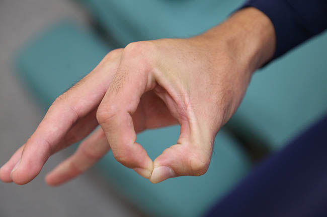 グッ、グッと指を開こうとする先生と、指をしっかり締める岩崎さん