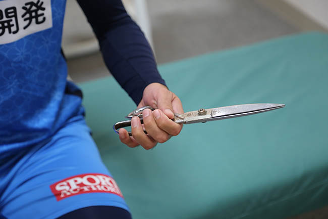 開かないようにグッと力を入れててくださいね。行きますよ。