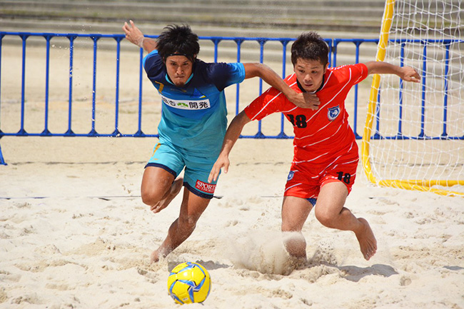 ビーチサッカーチーム、アヴェルダージ熊本の岩崎 司選手です。見よこの躍動感。