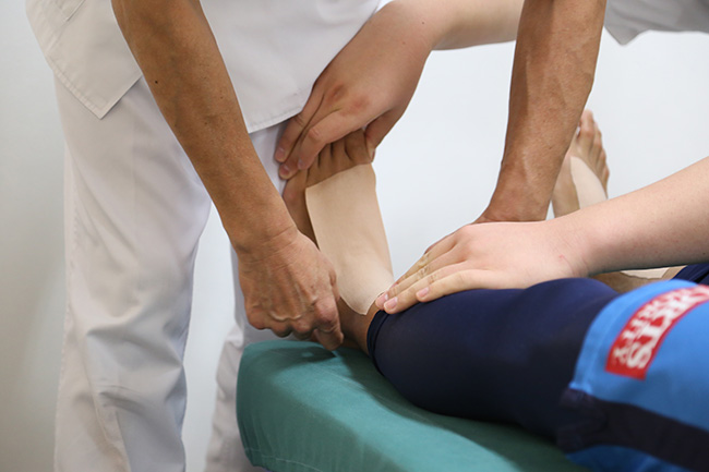 問診、診断を受けて、関節の状態が悪いと分かった部分の関節を締めて、テーピングで固定。とても理にかなった施術と言わざるをえない。