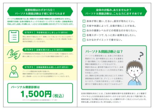 たった1,500円で全身の関節の状態がわかると。(マジか)