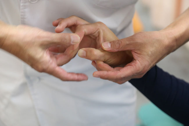 丁寧に圧をかけられています。とにかく関節は締めることが重要とのこと。