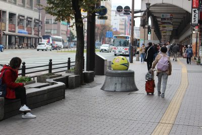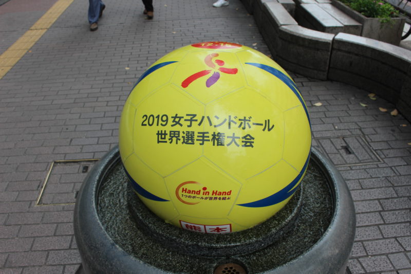 熊本国際スポーツ推進事務局によると、「人通りも多く待ち合わせ場所にも使われているこの場所でより多くの人の目に触れて興味を持ってもらいたい」と設置したもので、2019女子ハンドボール世界選手権大会までこの姿の”パル玉”が見られるそう!