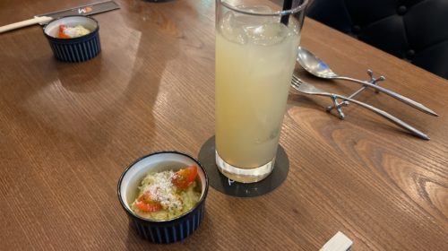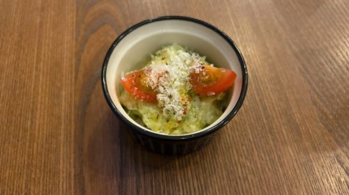 まずはコペルト(お通し)のジェノベーゼのポテトサラダ。