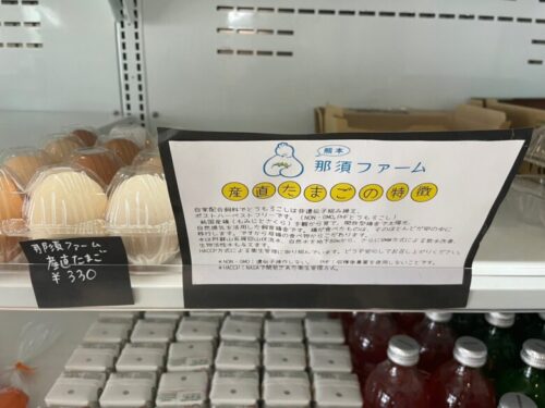 遺伝子組み換え飼料を使用せず、鶏の飲み水にもこだわった那須ファームの産直たまごも販売されています。