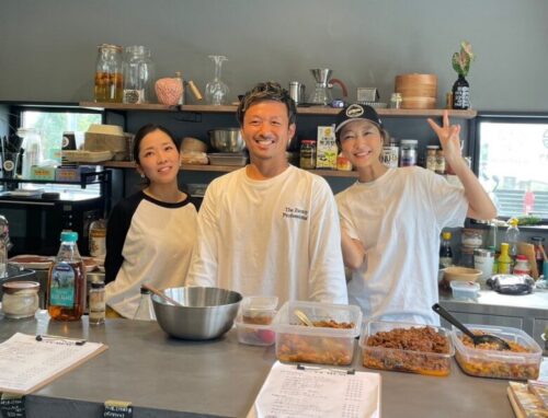写真中央が石原さんで、「野菜のフードロスを解消したい」と、新しくお店を始められました。