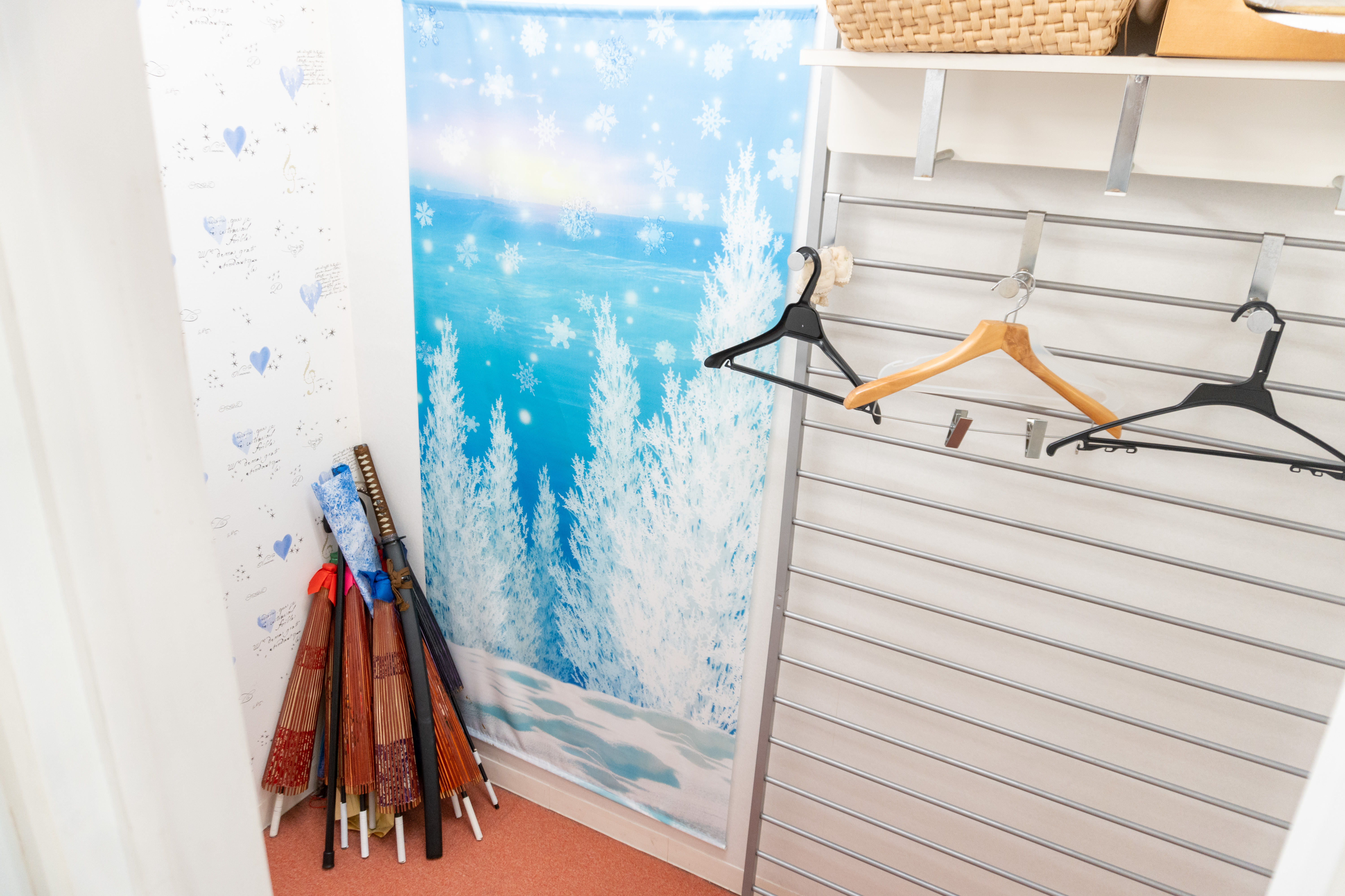更衣室内のこの壁紙もとっても可愛いくてここを背景にして撮影する人もいるとか。