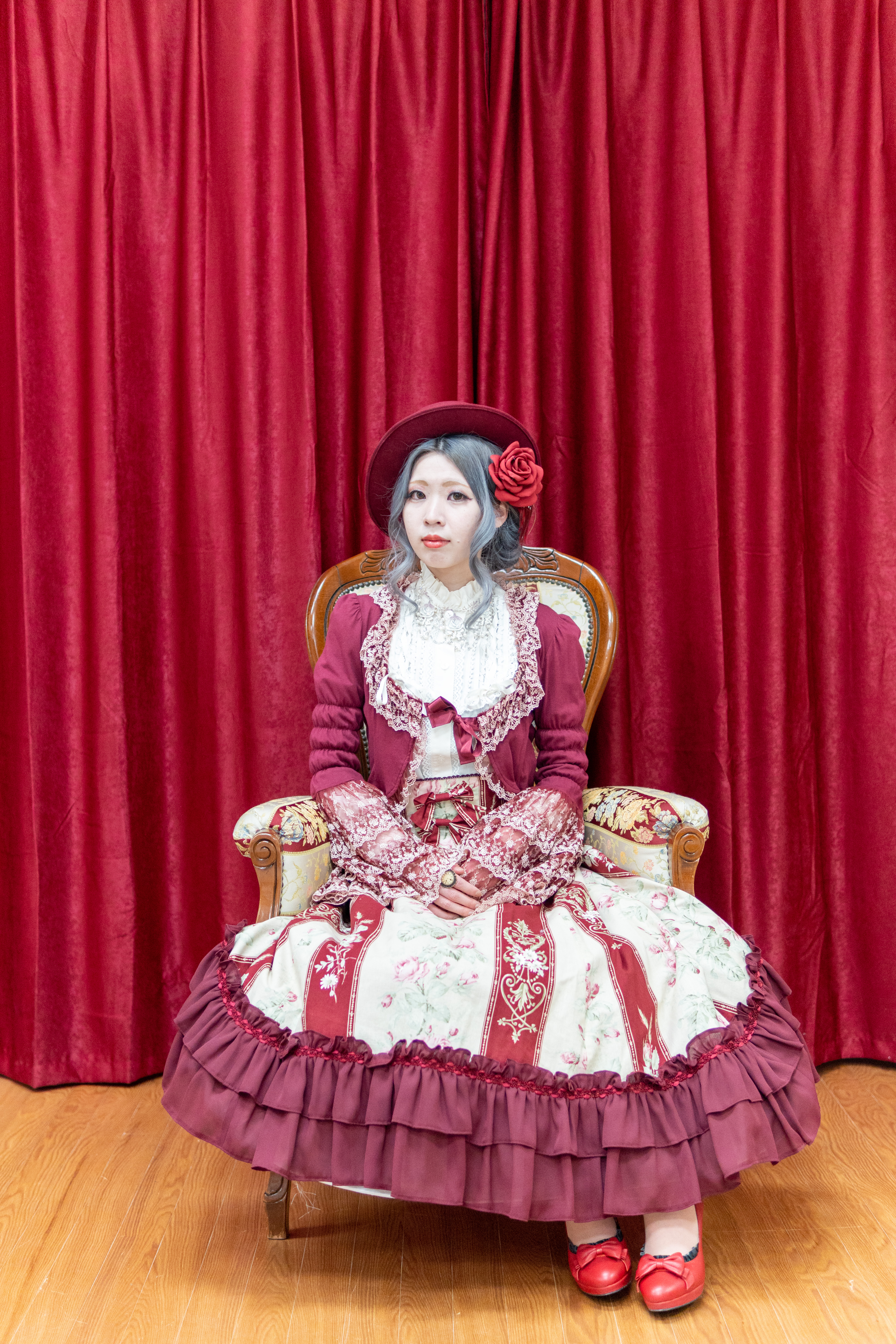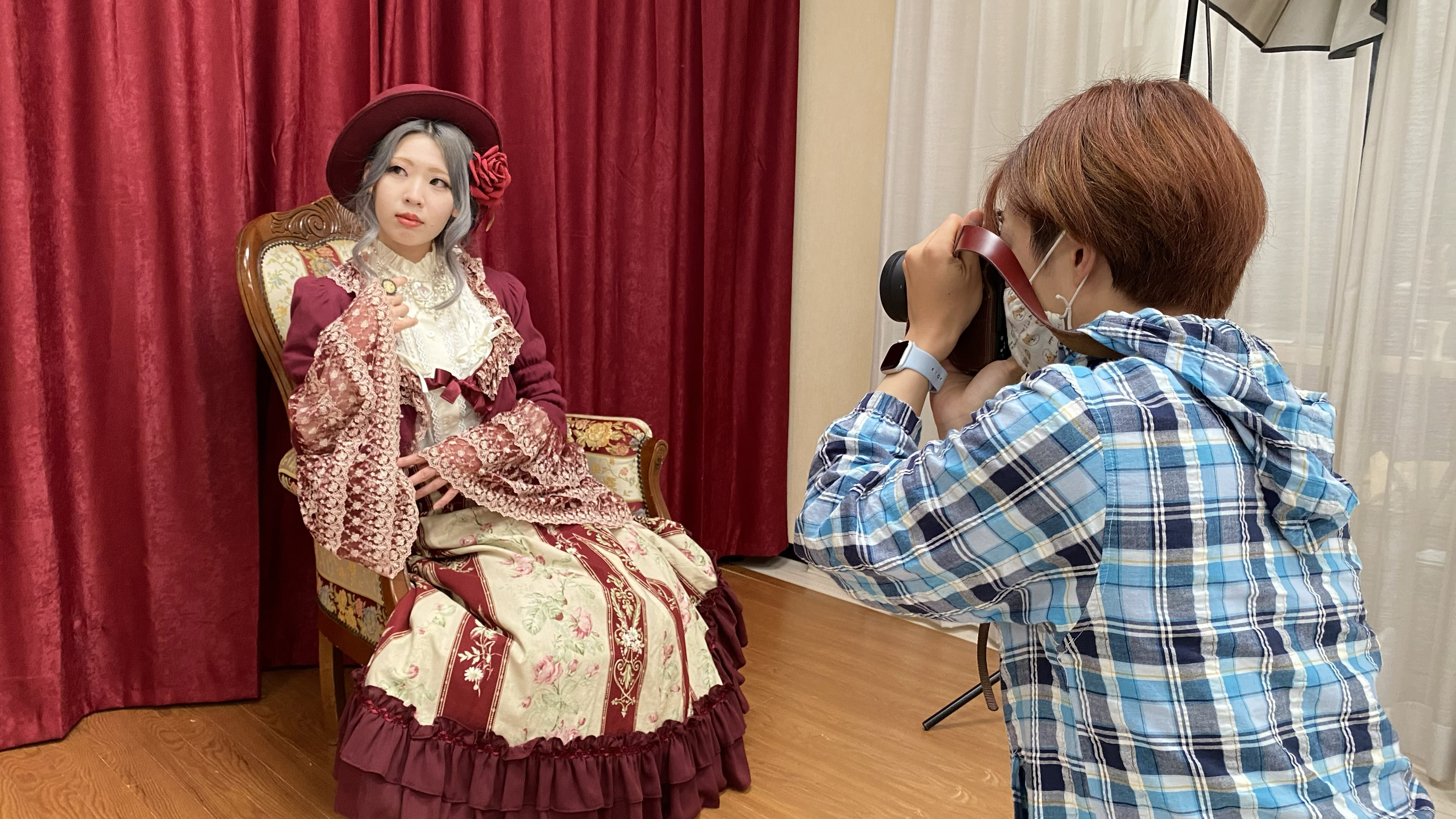 まずは、赤いカーテンのあるフォトスポットにて撮影。