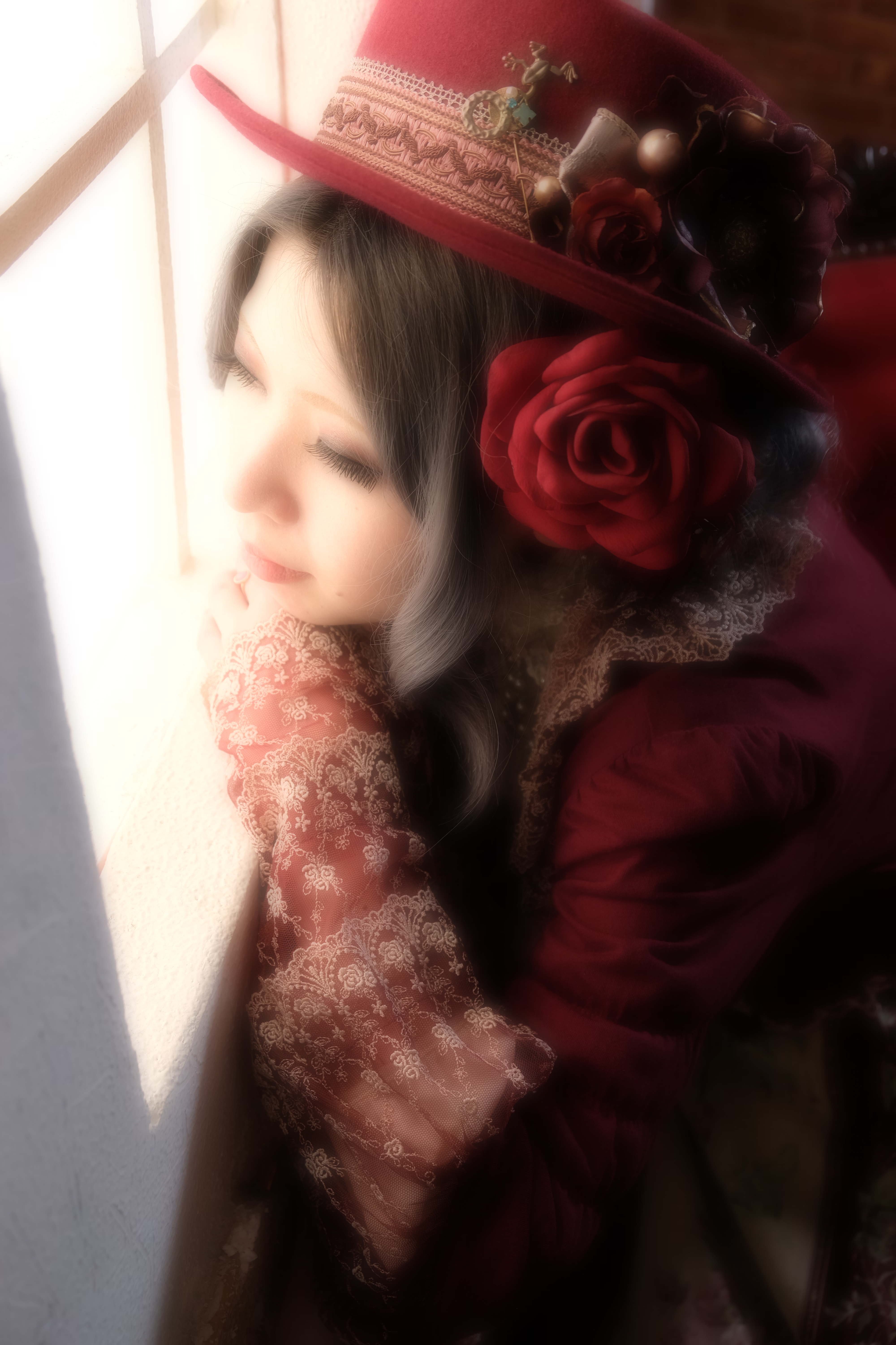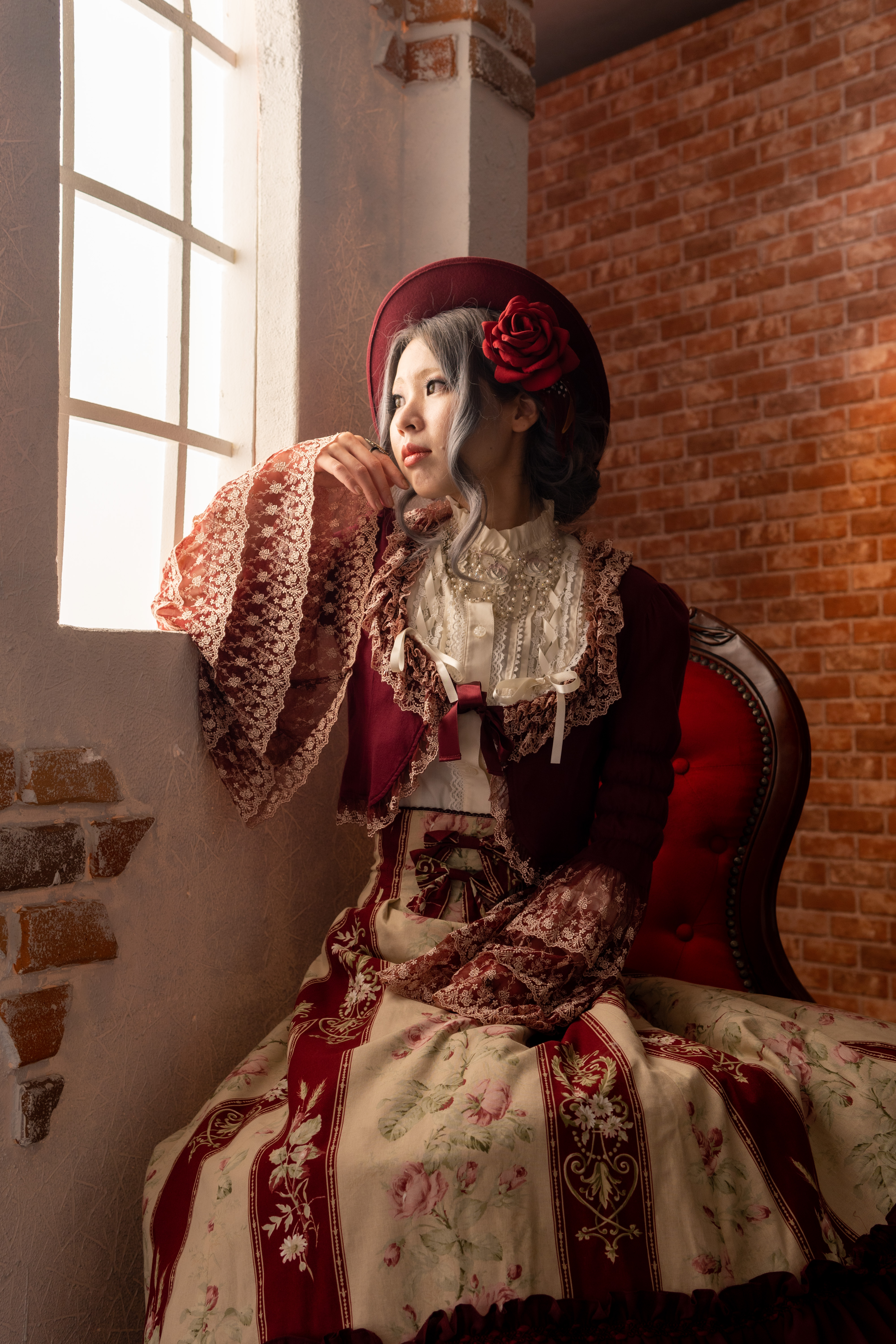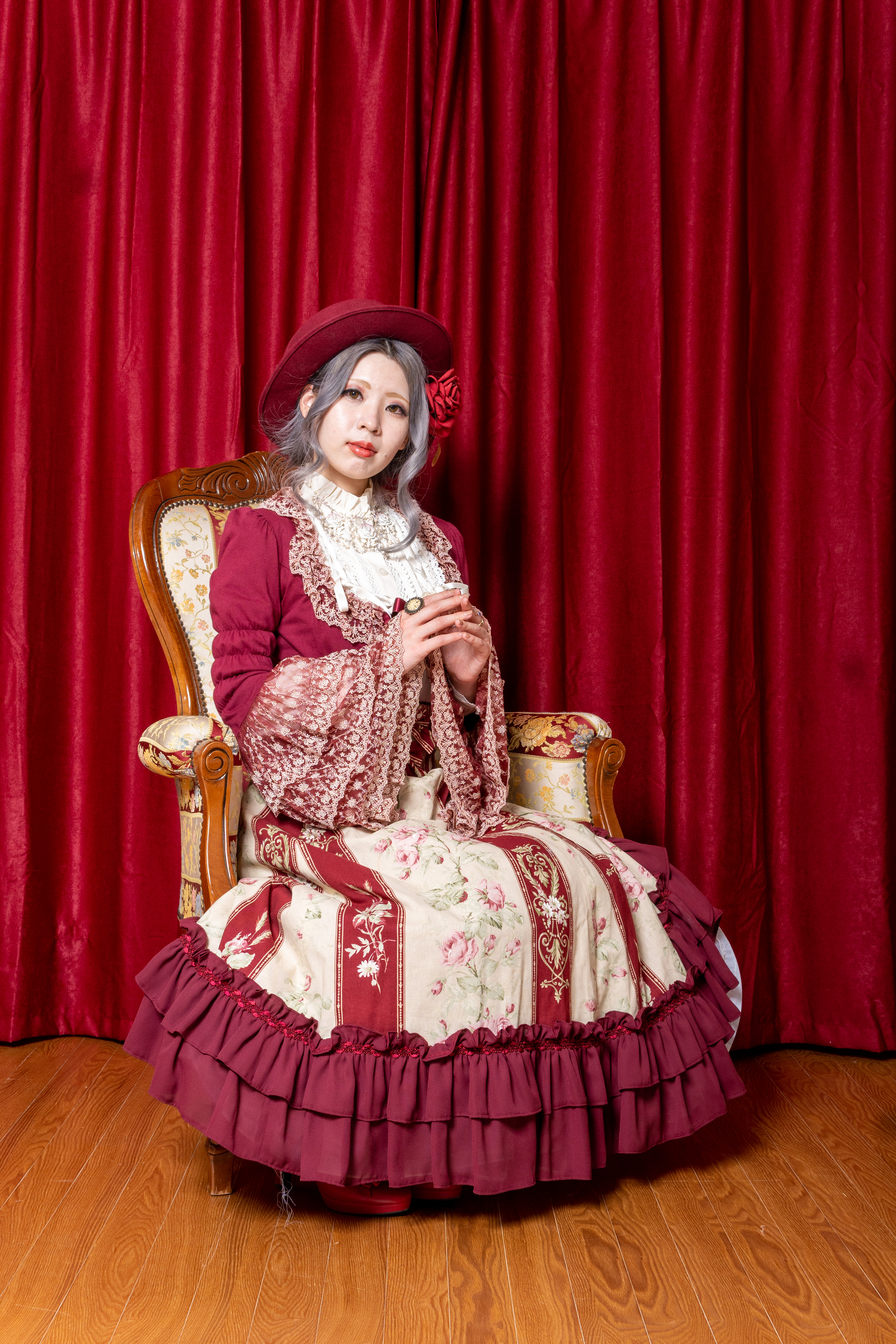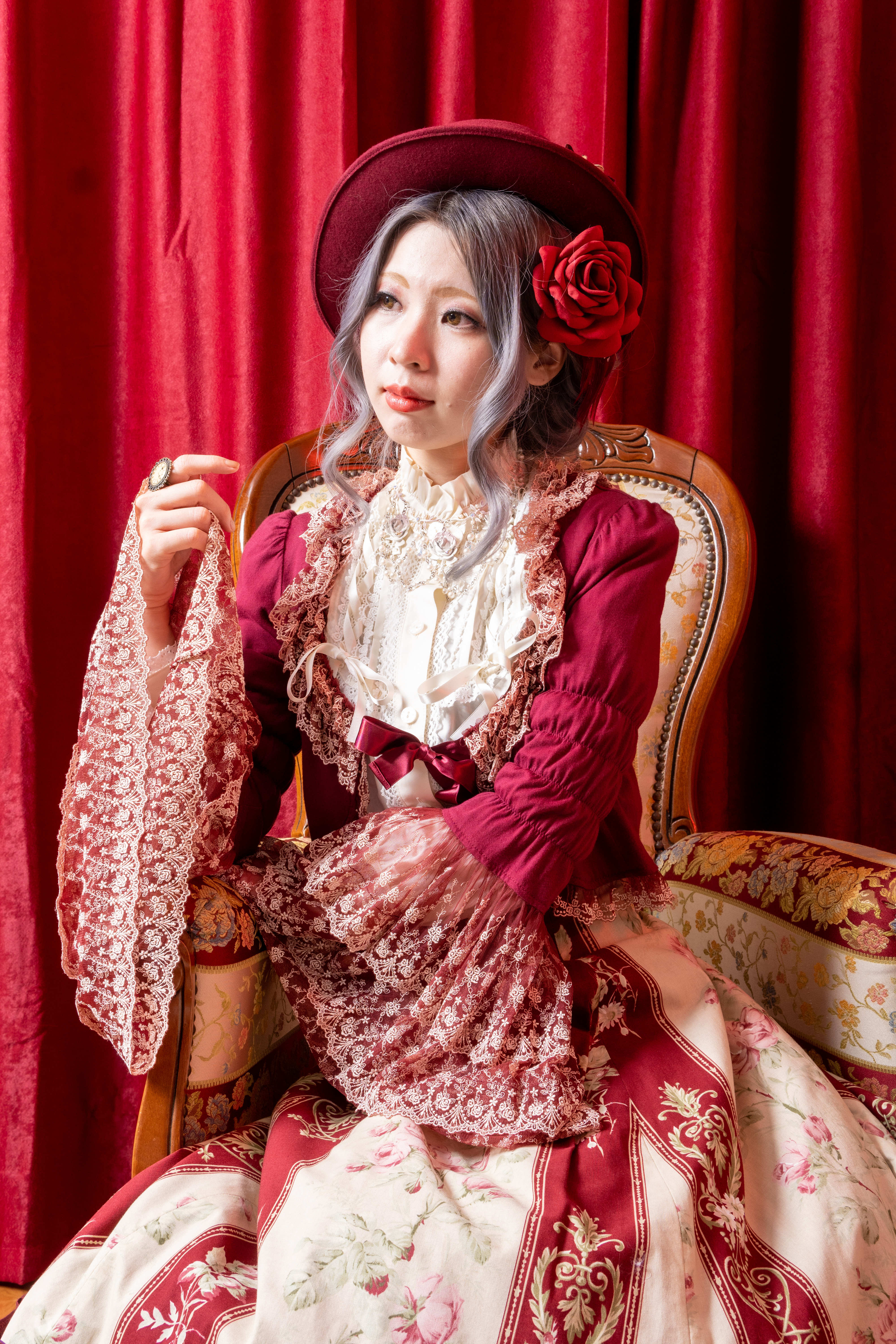 まずはメルヘンチックで可愛いスポット。赤いカーテンが背景だとゴージャス感がありますね。