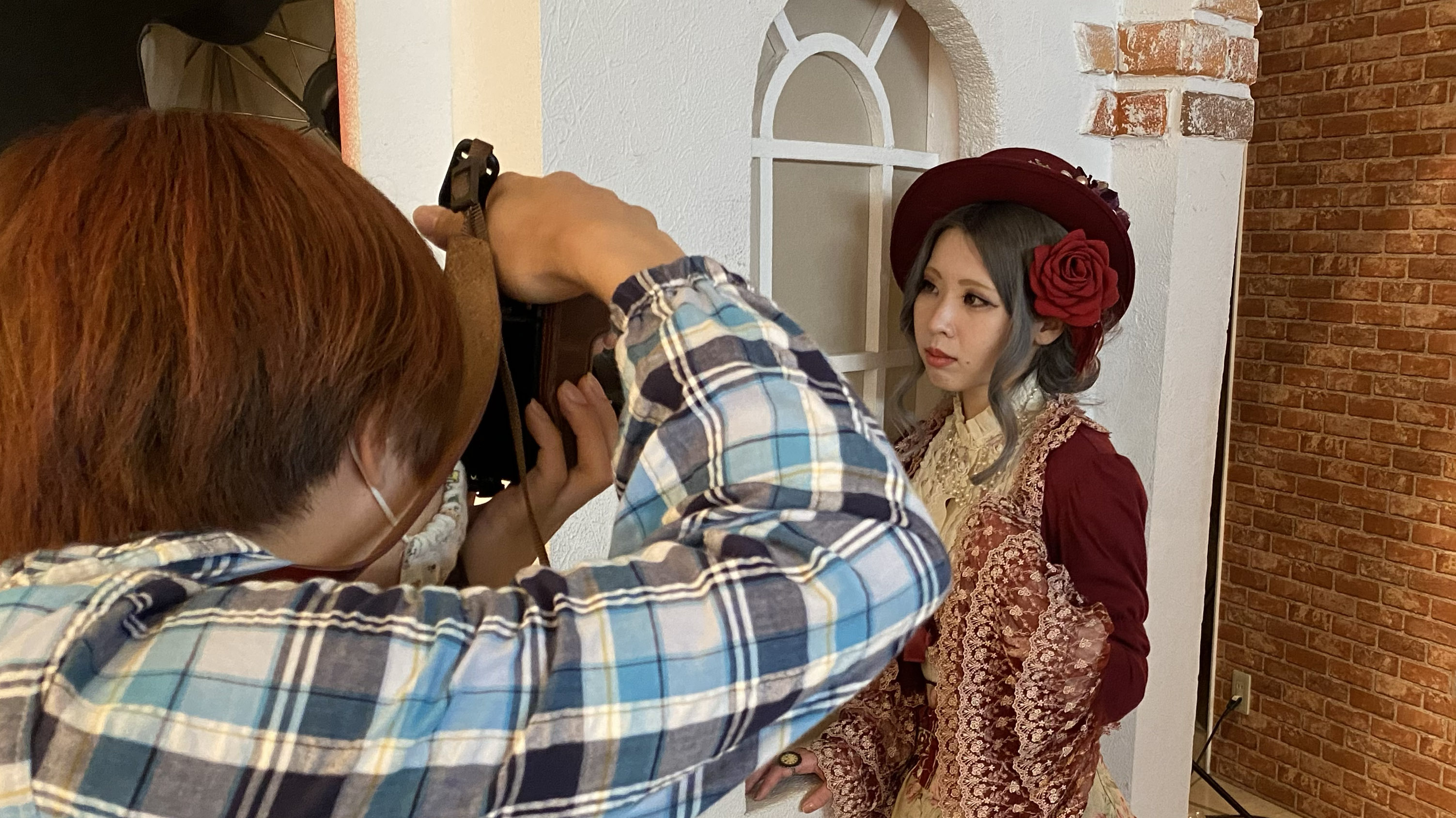 こちら新たに現れたレンガの壁と組み合わせた撮影風景。