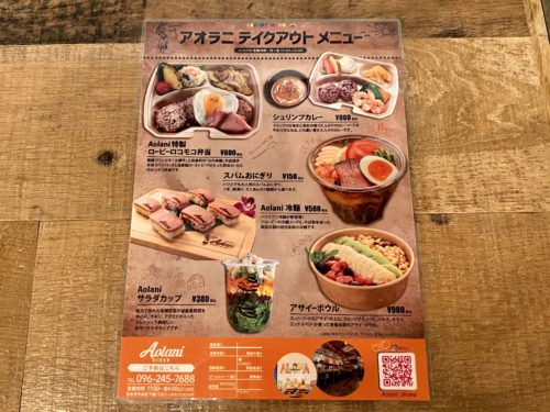 | 所在地 | Aolani DINER(アオラニ ダイナー) 熊本県熊本市中央区下通1丁目12−28 タシロビル1階 Aolani PARLOR(アオラニ パーラー) 熊本県熊本市中央区上林町3−36 |